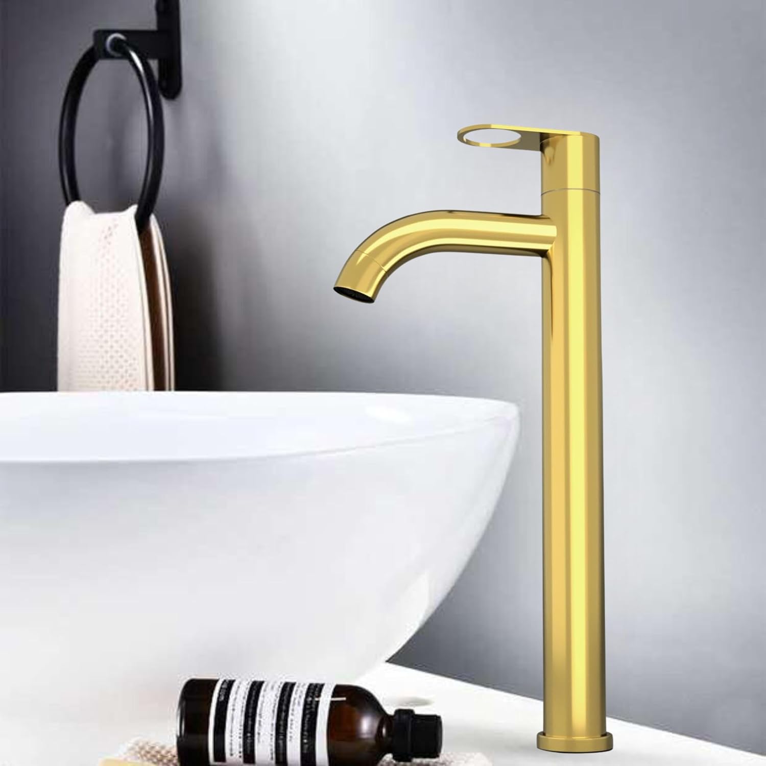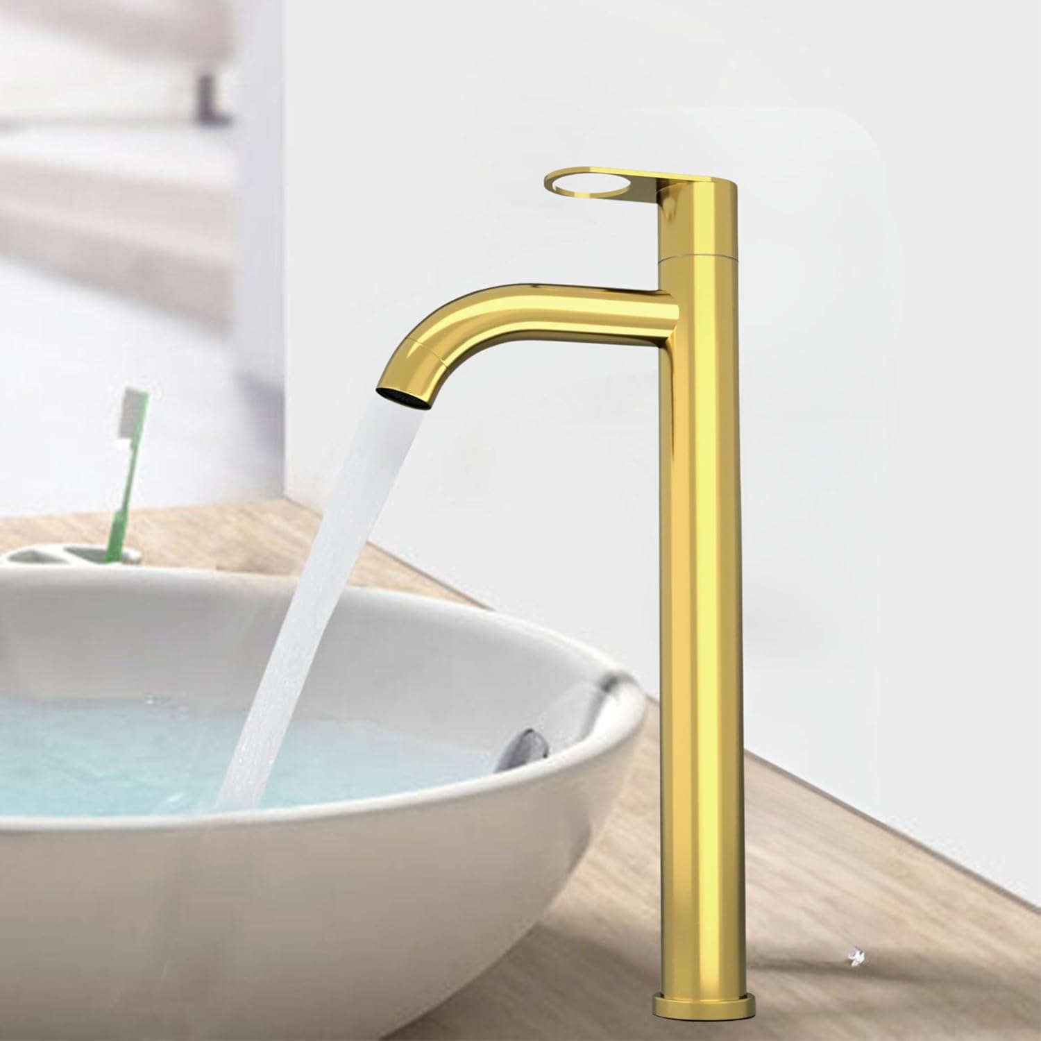 • The VERTICAL water spout on this vessel sink faucet prevents splashing and keeps water flowing directly into the sink